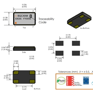 BQCSB-33MF-BCDFT,33MHz,6035mm,Bliley高穩定性晶振,BQCSB,石英晶體諧振器,美國進口晶振,Bliley百利晶振,型號:BQCSB系列晶振,編碼為:BQCSB-33MF-BCDFT,頻率為:33.000MHz,小體積晶振尺寸:6.0x3.5x1.2mm,四腳貼片晶振,無源晶振,石英晶振,6035晶振,石英晶體諧振器,SMD晶振,貼片石英晶振,無鉛晶振,工作溫度范圍:-40℃至+85℃。具有超小型,輕薄型,高精度,高性能,高品質,高質量,耐熱及耐環境特點。進口晶振,被廣泛應用于:通訊設備,無線網絡,藍牙模塊,物聯網,車載晶振,醫療設備,安防設備,平板電腦,智能家居,數碼電子等。