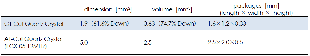 GT-cut石英晶體單元最初是在20世紀40年代作為具有卓越頻率-溫度特性的部件開發的,它在毛坯制造方面提出了挑戰,限制了體積生產。另一方面,AT-cut石英晶體單元近年來出現了向支持更高頻率以響應更小封裝的趨勢,產生對更小封裝的需求,在較低MHz頻率下工作的低功率單元。