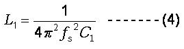 在公式一中, ,動態電容C1及動態電感L1與串聯偕振頻率, fs ,是相互關聯的.在實際的量測系統中, 我們祇能量測到動態電容C1及串聯協振頻率fs . 動態電感L1是由公式(4)計算得到.
