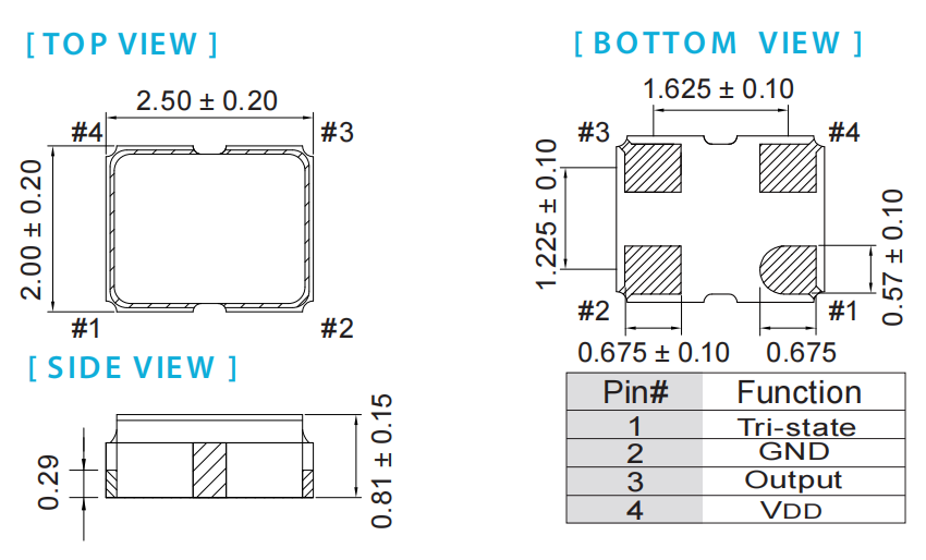 OYKTDLKANF-0.032768,2520mm,32.768KHz,Taitien石英晶振,CMOS晶振,智能儀表晶振,尺寸圖